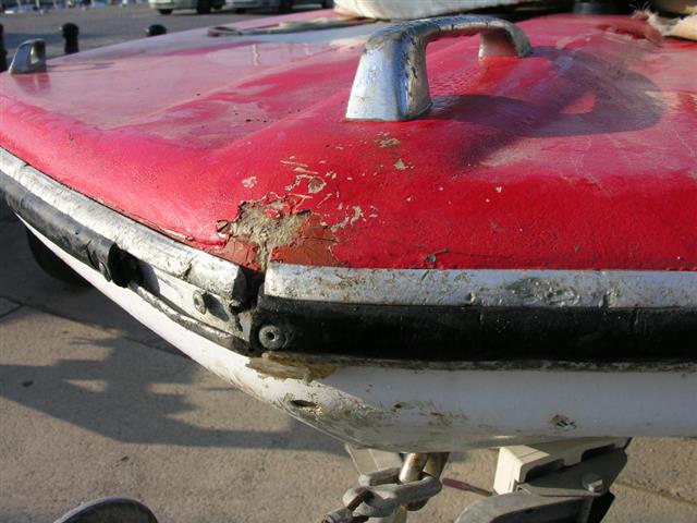 Otro de los inconvenientes habituales de los perfiles o tapas metálicas, aparte de su elevada capacidad de deformación irrecuperable en caso de impacto, o de los peligrosos rebordes de metal, cortantes al tacto, que aparecen, por ejemplo, tras una rozadura con un muele de cemento, eran también los graves daños que podían provocar en el casco de una embarcación adyacente, en caso de colisión, o de rozamiento continuado, tanto a causa del propio perfil metálico, como también a través de las cabezas de los propios tornillos de fijación.